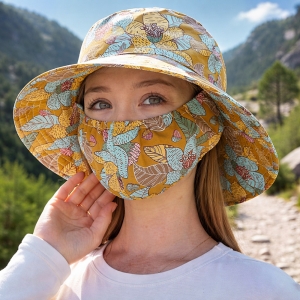 플라워 마스크 일체형 모자(머스타드)