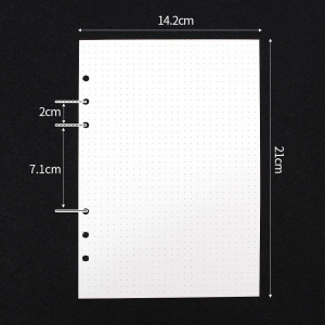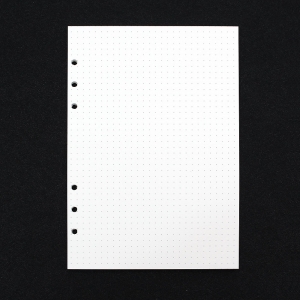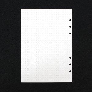자유롭고 깔끔한 도트 6공 다이어리 속지 자유로우면서 기준이 되는 도트 / 형식에 구애받지 않고 자유롭게 메모 모조지 100g으로 제작되어 비침과 번짐이 적고 필기감이 좋아요. ▶ 속지 정보 양 식 : 양면 도트 사이즈 : 142mmx210mm 재 질 : 100g 모조지 매 수 : 180매 (45매 x 4SET) |