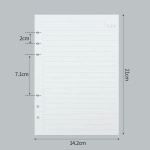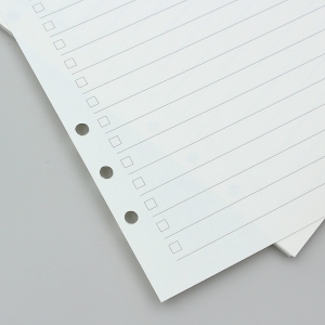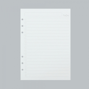 투두 리스트 6공 다이어리 속지 잊지 않게, 오늘의 할 일을 기록하고 체크하세요! 모조지 100g으로 제작되어 비침과 번짐이 적고 필기감이 좋아요. ▶ 속지 정보 양 식 : 양면 투두 리스트 (줄 간격 9mm) 사이즈 : 142mm x 210mm 재 질 : 100g 모조지 매 수 : 135매 (45매 x 3SET) |